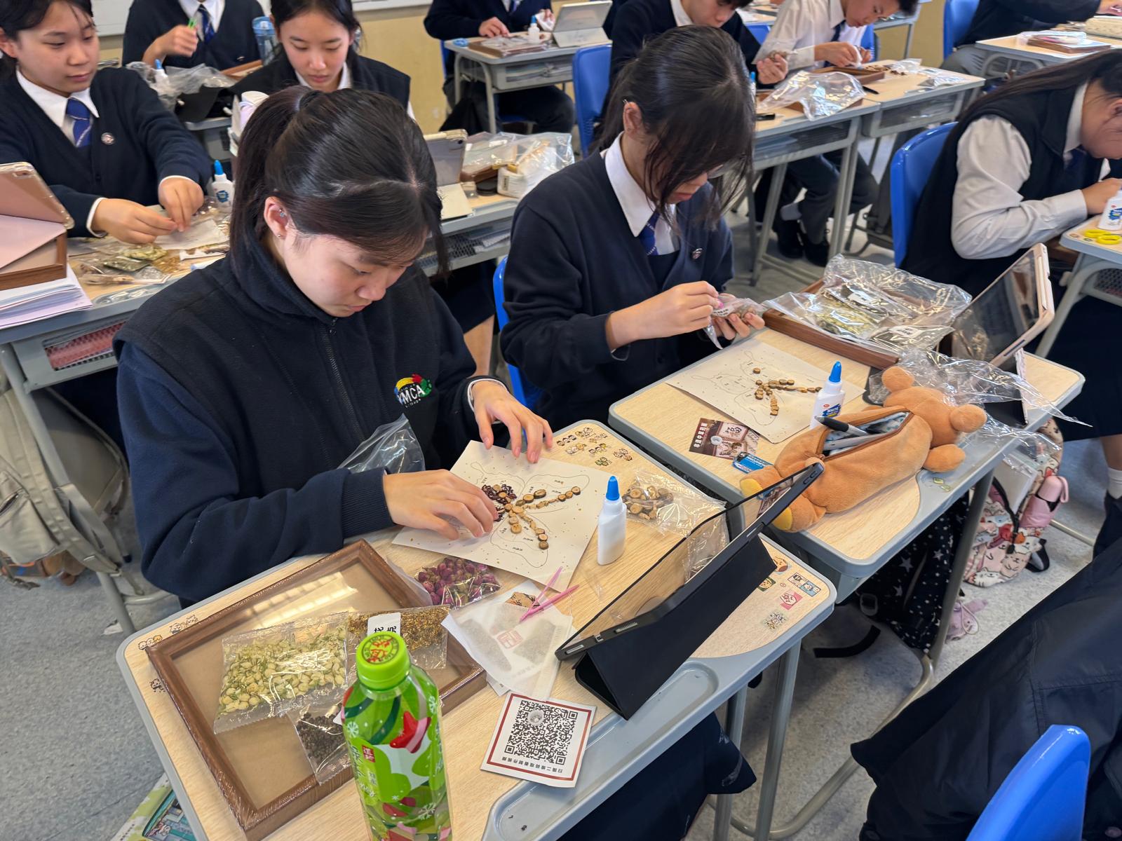 德育、公民及國民教育組為中四級學生安排了中華文化活動——非遺香氛畫製作。在老師的指導下,同學根據個人喜好選擇不同圖案,並深入了解各種草藥的質地與氣味特性,最終完成了獨一無二的香氛畫作品。