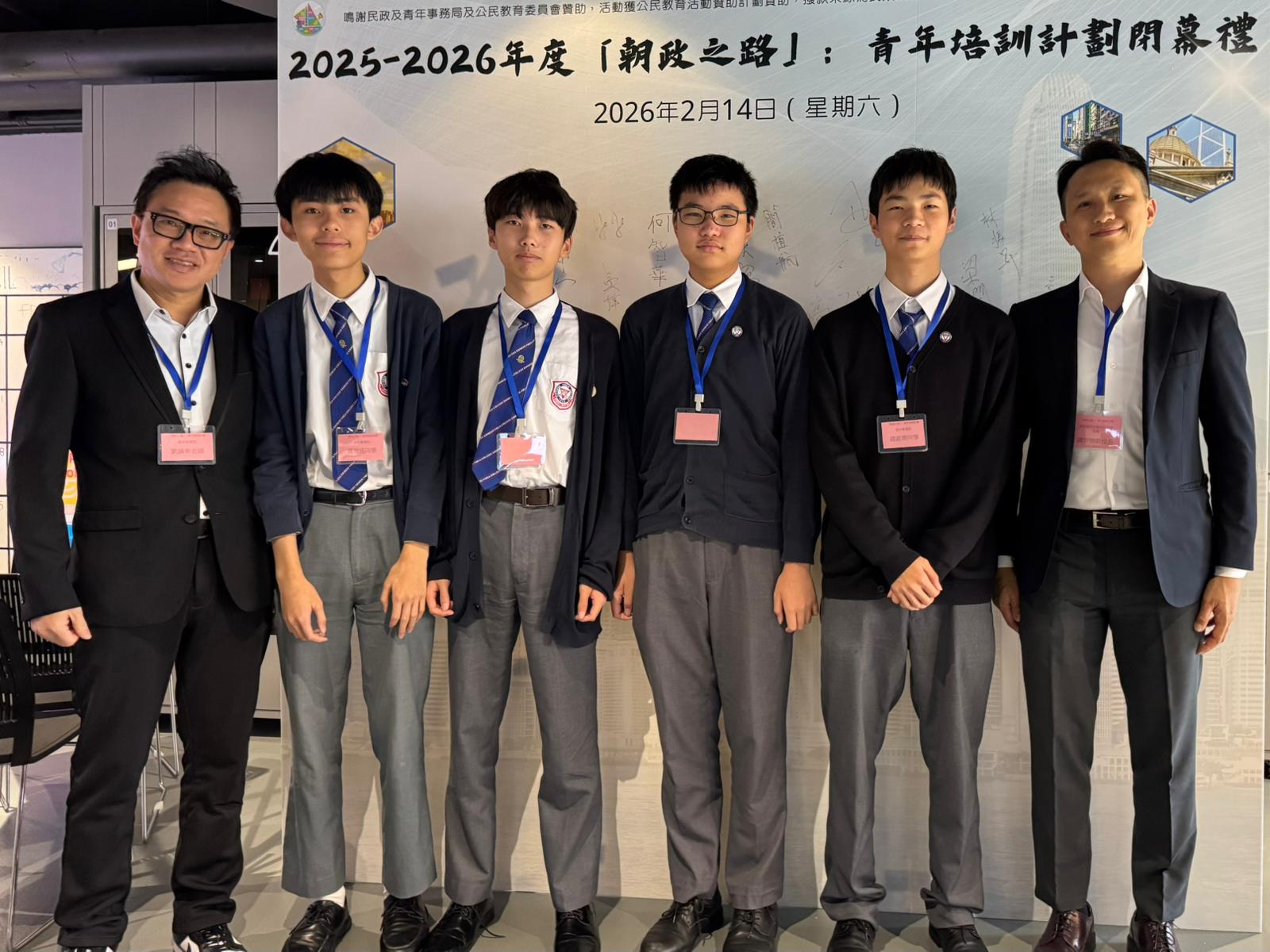 4C練浩楠、4C蕭智迅、4D趙嘉樂、4D余子軒及4D戴恩暉參加了由神話東方青年會主辦、民政及青年事務局及公民教育委員會贊助的2025-2026年度「朝政之路」青年培訓計劃。他們在「國家政策建議提案比賽」中更是脫穎而出,榮獲銅獎。今年的比賽主題是「如何善用香港的優勢,貢獻國家在科技、經濟、文化或環保方面的發展」,同學們針對此主題進行了深入研究,提出了創新的建議和實用的方案。